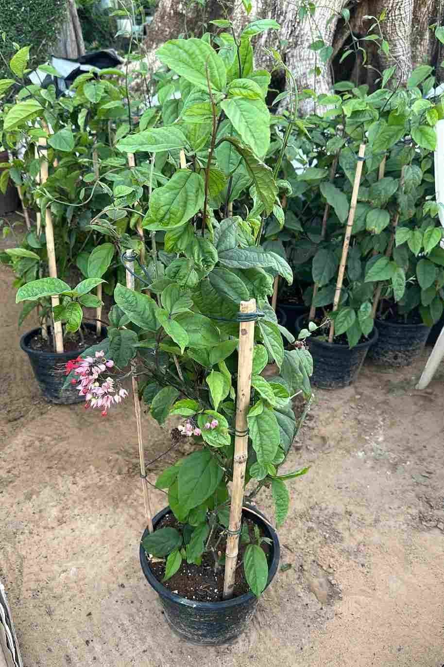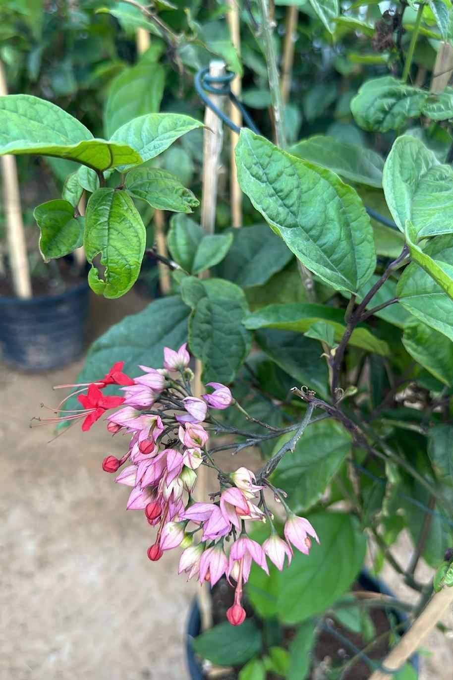 Growth Habit: As a vine, Clerodendrum thomsoniae exhibits a twining growth habit, climbing and clinging to support structures such as trellises, arbors, or fences. It can also be trained as a trailing plant in hanging baskets or containers. With proper care and support, it can reach lengths of 6 to 10 feet (1.8 to 3 meters) or more.