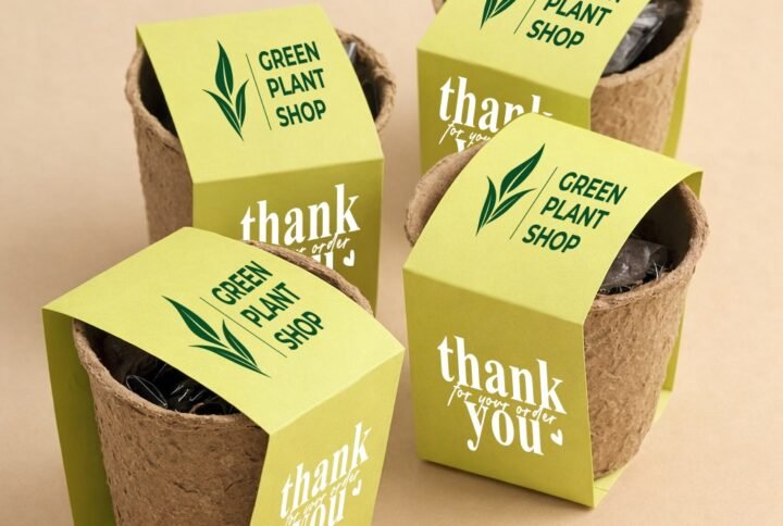 – Branded packaging material: recycled paper