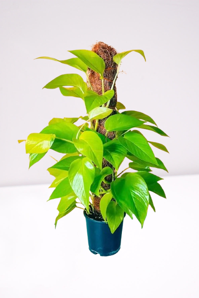 The Pothos, or the Epipremnum aureum, is native to Southeast Asia. It has the reputation of being one of the easiest houseplants to take care of. Its common name, Pothos, comes from the genus it was once classified under: Pothos aureus. In the wild, it is known to overgrow forest floors and tree trunks due to its aerial root system, which can be used to help it grow vertically in the home up a coir pole. In good indoor conditions, you can expect the Pothos to trail to 10 feet long and grow leaves that are 3 feet in length if trained to climb! The Pothos is particularly fitting for indoor settings because it can filter gaseous toxins like formaldehyde from the air.